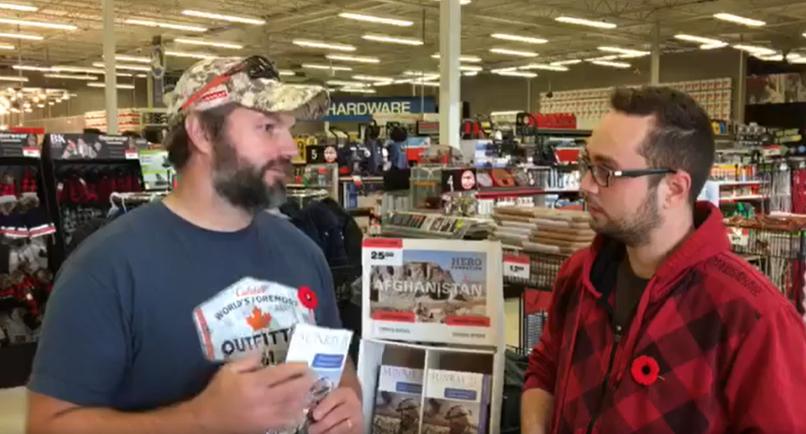 I had the honour of meeting Retired CanadianArmed Forces Captain Jocelyn Demetre this morning at Canadian Tire. He’s here to promote his book, Sunray 21, which raises funds for the local jumpstart program and the Hero Foundation, which is meant to help Canadian veterans suffering from PTSD. ~ Andreas “The Panda”